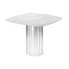 Столешница выполнена из МДФ со скошенной кромкой. Это позволяет придать столу визуальную лёгкость, но при этом не потерять высокие показатели прочности столешницы. В качестве материала отделки используется HPL c текстурой белого мрамора, который придаёт изделию высокую устойчивость даже к самым активным действиям на его поверхности, что обеспечивает долгие годы его эксплуатации для Вас.