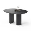 Подстолье изготовлено из МДФ и покрыто чёрной эмалью. При раскладывании стола подстолье делится на два полукруга.