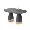 Подстолье диаметром 550 мм в широкой части изготовлено из МДФ. В качестве материала отделки для нижней части используется золотая эмаль. Верхняя часть покрыта чёрной эмалью с двумя слоями защитного матового лака. При раскладывании стола подстолье делится пополам.