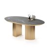 Овальное подстолье размером 700х450 мм изготовлено из МДФ и покрыто золотой эмалью. При раскладывании стола подстолье делится на два полуовала.