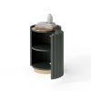 Тумба выполнена из МДФ и покрыта зеленой эмалью с двумя слоями защитного матового лака. Столешница и цоколь покрыты золотой эмалью.
